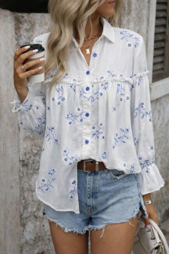 Kadın uzun kollu yakalı önden düğmeli cep detaylı kadife gömlek