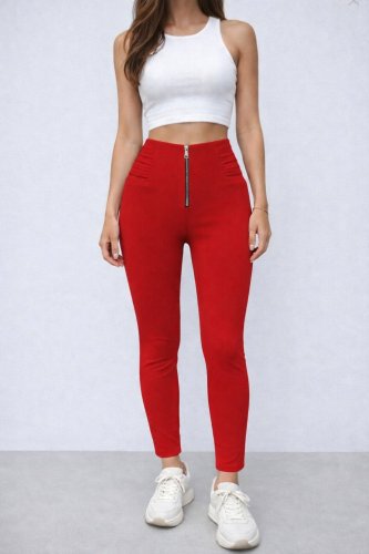 Kadın yüksek bel önden fermuarlı dalgıç tayt