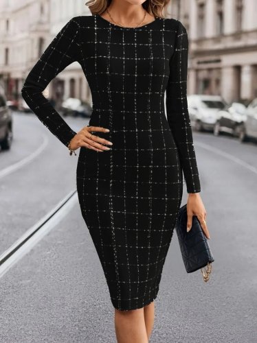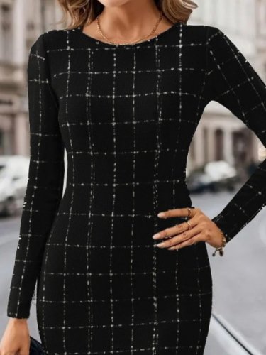 • Kadın uzun kollu yuvarlak yaka mini dokuma elbise