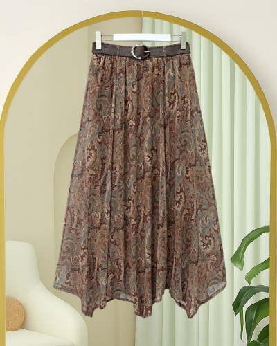 • Asimetrik Kesim Astarlı Kemerli Şifon Etek Haki
